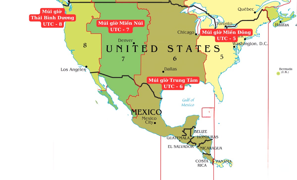 Điều này có nghĩa, khi ở Việt Nam là một thời điểm cố định, thì ở Mỹ sẽ có nhiều mốc giờ khác nhau tùy khu vực.